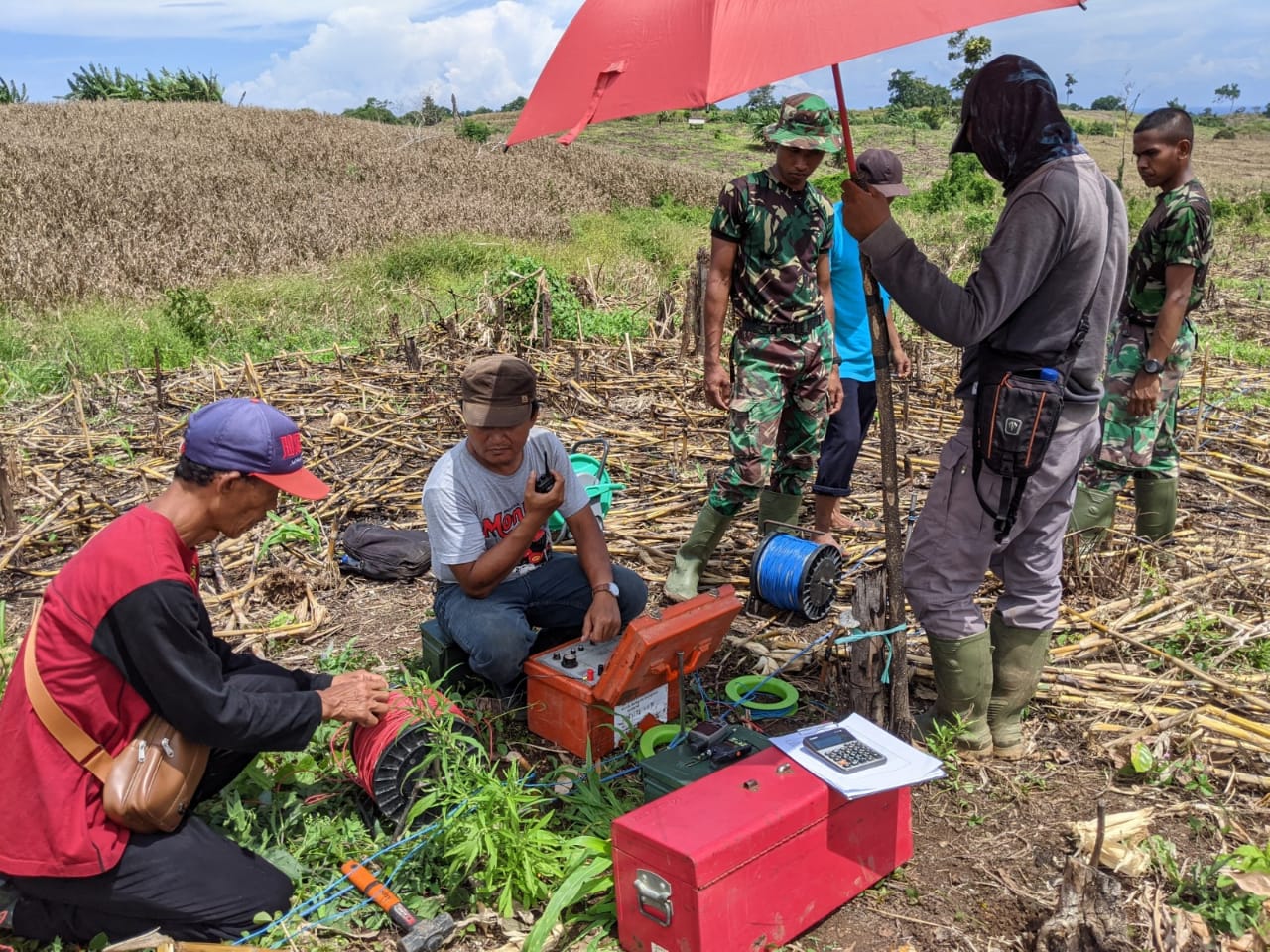 Kamis, 25 Maret 2021. Kepala Seksi Pemetaan Geologi dan Air Tanah Dinas ESDM Provinsi NTB, Bapak Amri Rosyada, ST., MT, beserta tim melaksanakan kegiatan geolistrik. Selain dari Dinas ESDM, kegiatan tersebut juga dibantu oleh kodim 1628 Sumbawa Barat. Kegiatan geolistrik ini bertujuan untuk melakukan pendugaan potensi air tanah di Food Estate Mini Talonang Kec. Sekongkang Kab. Sumbawa Barat.