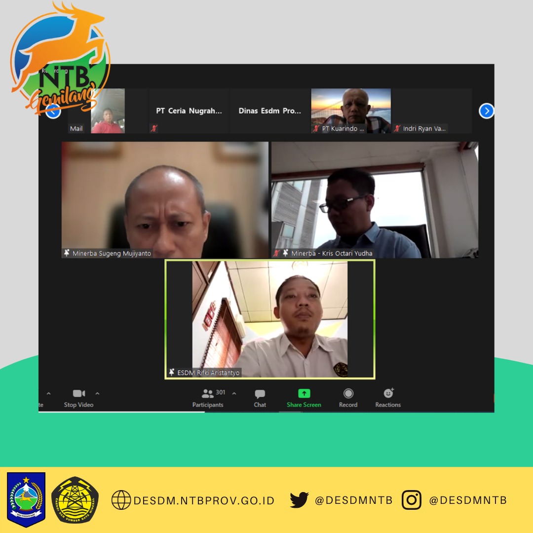 Selasa 16 Maret 2021, Bidang Minerba Dinas ESDM Provinsi NTB mengikuti Kegiatan "Sambung Rasa Dirjen Minerba" melalui aplikasi Zoom Meeting yang diadakan oleh Direktorat Jenderal Minerba dan Batubara Kementerian ESDM RI dalam rangka pembinaan terhadap pelaku usaha pertambangan. Kegiatan dihadiri oleh Para Pemegang Kontrak Karya, Izin Usaha Pertambangan (IUP) Logam dan Non-Logam, IUP OPK Pengolahan dan Pemurnian Mineral serta Instansi Dinas ESDM di Beberapa Provinsi di Indonesia. Acara dipimpin langsung oleh Direktur Pembinaan Pengusahaan Mineral yang selanjutnya juga memberikan pengarahan dan jawaban dalam sesi tanya jawab.